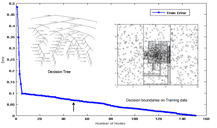 • 左树更复杂,训练误差更低;