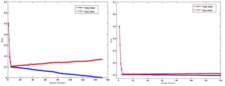 • 右树更简单,训练误差略高