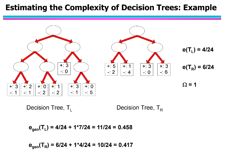 • 左树更复杂,训练误差更低;